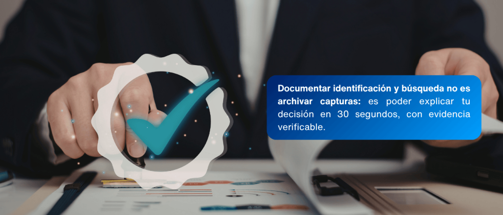 Eso significa que, si alguien revisa el caso después, pueda entender qué fuente se consultó, cuándo se consultó, con qué datos se hizo la búsqueda y por qué se tomó determinada decisión.