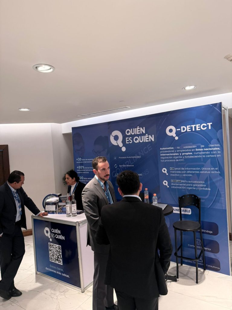 Quién es Quién participó presentando sus capacidades en segmentación de listas, APIs de alto rendimiento y soluciones para automatizar procesos de conocimiento de cliente y monitoreo continuo, alineadas a los retos diarios de los oficiales de cumplimiento.